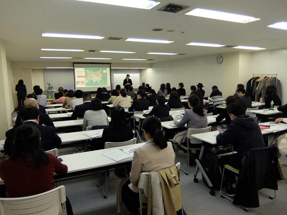 ほぼ満席の会場には大手ホテルやレストラン、食品会社などの関係者の方々が集い、大使館の広報・報道・観光担当のエッセル=マリンスキーさんによるイスラエルの概要についてのプレゼンテーションも行われました。