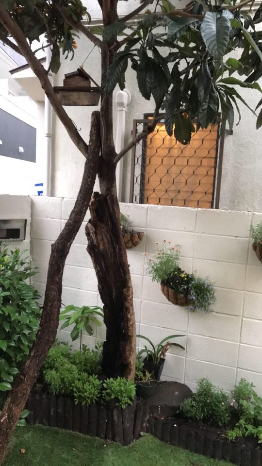これは私たちのビワの木です。 数年前から幹が腐り始め、瀕死の状態でした。 しかし私たちは諦めず、昔からの教えに従い、また元気になることを信じて世話を続けました。