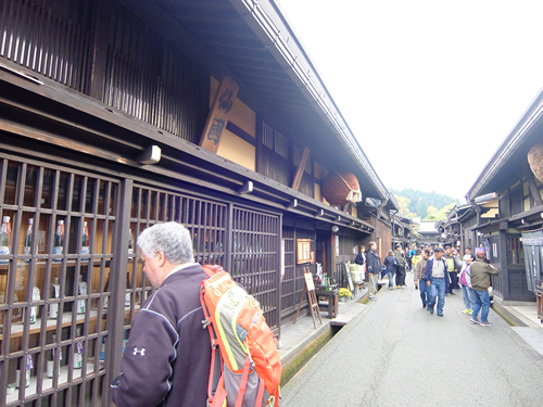↑舩坂酒造店様のある、風情ある伝統的な日本家屋の立ち並ぶ高山の通り。欧米を中心にした外国人観光客の姿が目立ちます。