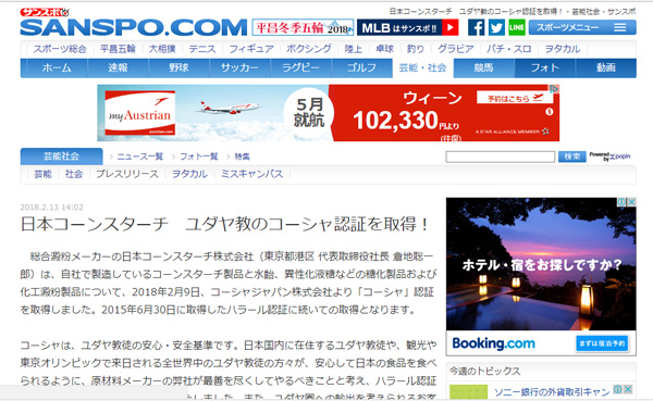 日本コーンスターチ株式会社様では、「日本国内に在住するユダヤ教徒や、観光や東京オリンピックで来日される全世界中のユダヤ教徒の方々が、安心して日本の食品を食べられるように、原材料メーカーの弊社が最善を尽くしてやるべきことと考え」、また「ユダヤ圏への輸出を考えられるお客様が増えており、輸出製品に用いる原材料のコーシャ性が重要となり」、2015年のハラール認証に続いて今回、コーシャ認証取得を実現されました。