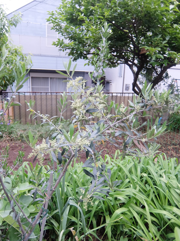 当日はまず、この1月にハバッドジャパンによるクラウドファンディングの成功で解体を免れた、1920年代築の歴史的建造物「マゴメハウス」(大田区南馬込)の庭に植えられた5種類のオリーブの木を見学。今がちょうどオリーブの花の季節で、ご参加者に珍しいその姿を見ていただきました。