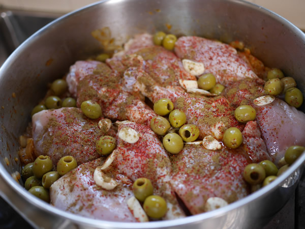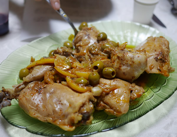 こちらはラビ・ビンヨミンの父方の故郷でもあるモロッコの料理。コーシャジャパンがコーシャ認証した国産鶏肉「はかた一番どり」とオリーブの実、オリーブオイル、トマト、レモン、スパイスなどを一緒に蒸し煮したもの。モロッコでは塩レモン(レモンの漬物)を使い、タジン鍋で作ることが多いそうです。ご参加者にもヘルシーでおいしい!と大好評でした。