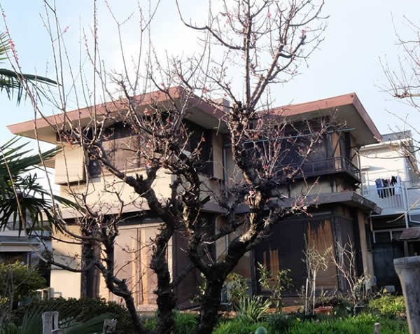 広々としたマゴメハウスの庭では、オリーブの木のほか、ゆずやざくろ、ラビ一家が耕した畑の野菜がすくすくと育っています。室内はまだリノベーションがされておらず傷みが見られますが、著名な建築家アントニン・レーモンドによる貴重な設計の面影が随所に見られます。