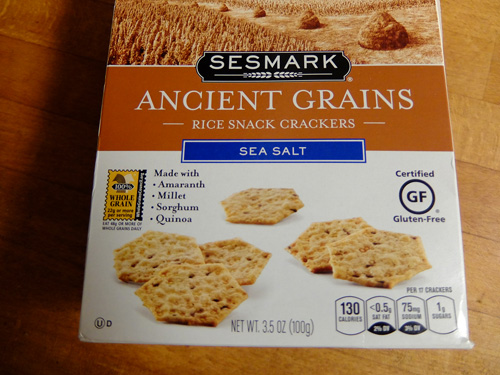 ↑玄米にアマランサスやソルガム、キヌアなどの雑穀を混ぜたグルテンフリーのクラッカー。グルテンフリーとコーシャ認証を取得している。食味がよく、「古代の穀物」というキャッチフレーズが、単にグルテンを摂取できない人だけでなくヘルシー志向の消費者の購買意欲もそそるものになっていて、興味深い。