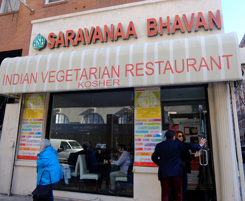 ↑マンハッタンの高級住宅街マレーヒルのインド料理店街にあるコーシャのベジタリアン向け南インド料理レストラン「Saravanaa Bhavan」。インド本国など世界各地にチェーン店を持つ。食材の品質への考慮を着目され、ユダヤ教徒以外のインド系ら健康に気遣うお客もやって来る。普通に食べておいしい南インド料理。