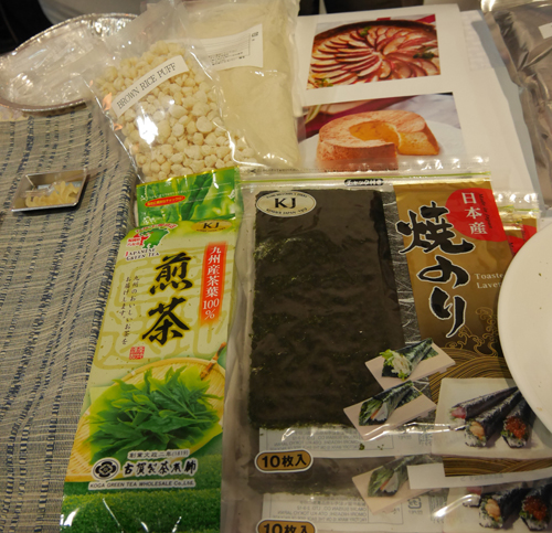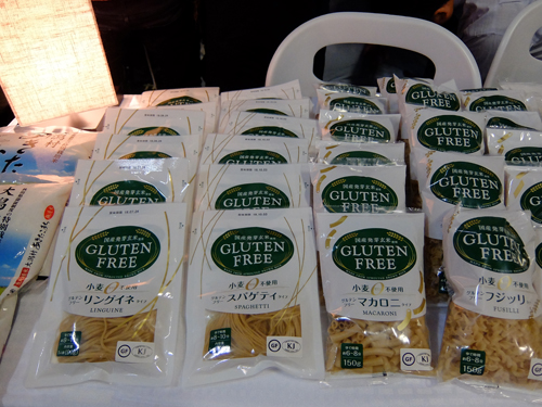 ↑小麦粉のパスタと見た目がそっくりなきれいな色のグルテンフリー米粉パスタや、米粉ペースト、日本酒、海苔、緑茶、麹などのサンプルを展示。「どこで買えるのか」と関心を示してくださったお客様も。