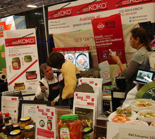 ↑韓国の食品メーカーのブース。コーシャ認証を取得したキムチを展示。
